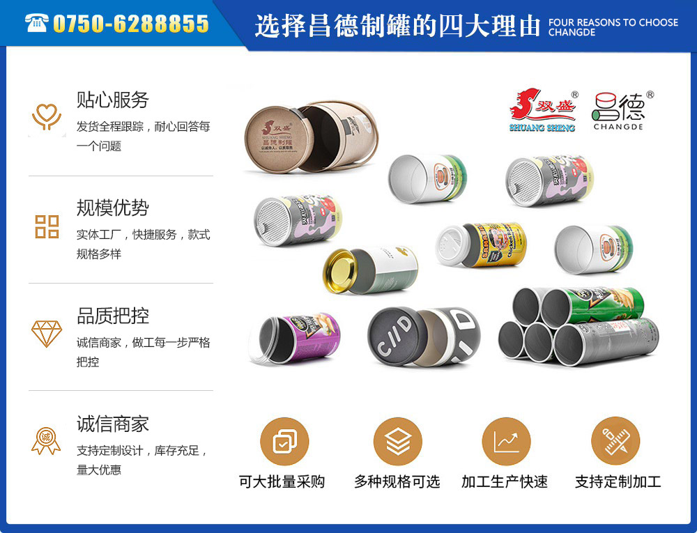 江門市昌德五金制罐有限公司位于江門與珠海臨近的古井鎮(zhèn),是專業(yè)生產紙罐,食品紙罐系列的包裝研制、開發(fā)、生產的廠家,從建廠至今,公司本著“重合同、守信用”的原則,以“質量求生存,客戶至上”為經營宗旨,贏得了很好的信譽,公司擁有國內一流的技術設備和多年的生產經驗。年產休閑食品紙筒500萬左右,紙筒2000萬支左右,易拉罐,食品罐等1000萬左右,產品銷往各地。我廠是以高科技為先導,以技術創(chuàng)新整合為手段,成為迅速崛起的專業(yè)性包裝企業(yè),憑借艱苦的創(chuàng)業(yè)精神和集體智慧,采用規(guī)范的現代企業(yè)運行機制,形成具有鮮明特色的企業(yè)文化模式和管理...